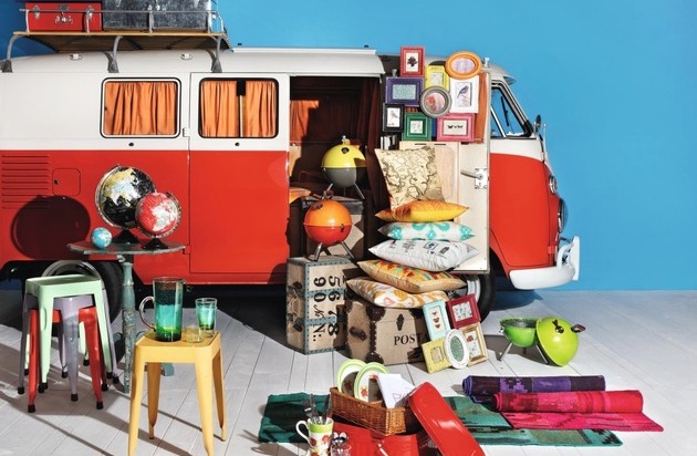 AROUND THE WORLD. Des trouvailles venues de pays lointains pour amener le monde jusque dans ses propres murs. Du cadre photo à la vieille malle de voyage en passant par le guéridon de téléphone, tous ces objets ont l'air d'avoir déjà survécu à des centaines de voyages. Les coussins imprimés de cartes géographiques ou de motifs Ikat se souviennent de voyages passés - les globes terrestres décoratifs, en plusieurs formats et couleurs, inspirent à de nouveaux voyages. La vaisselle rappelle une fête populaire haute en couleur. On aura donc doublement plaisir à mettre la table avec cette céramique peinte à la main originaire d'Afrique du Sud et d'Italie. Ajoutons encore quelques lumignons et photophores multicolores et le printemps peut arriver.