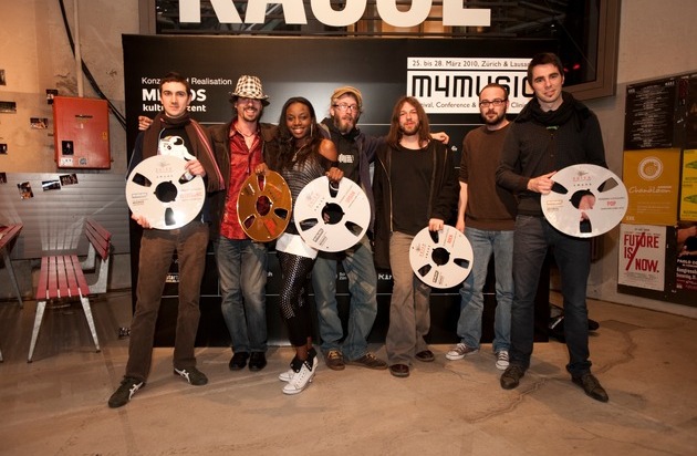 Tous les gagnants des SUISA-Foundation-Awards 2010: Lucas Aliu (Electronic), Melian (Rock), Miss C (Urban), Maris (Pop)