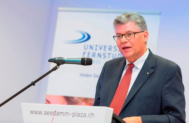 Walther Stählin, président du Conseil d'Etat du canton de Schywz. / Texte complémentaire par ots et sur www.presseportal.ch. L'utilisation de cette image est pour des buts redactionnels gratuite. Publication sous indication de source: "OTS.photo/Formation Universitaire à Distance, Suisse".