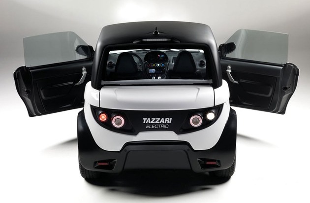 http://www.presseportal.ch/fr/pm/100019261 -Nulle hybride, nulle consommation de carburant - mais 100% de voiture! La ZERO de TAZZARI fait honneur à son nom "ZERO". Car le roadster élégant ne roule qu'en courrant électrique. Les batteries lithium ion phosphate de fer lesquelles se chargent à la prise normale de 230V donnent l'énergie à cette voiture de seulement 542 kilos. La petite Italienne pourra courir une distance de jusqu'à 140 kilometres.