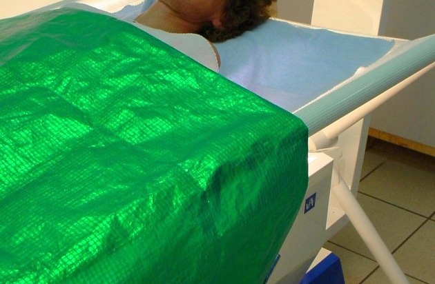 Sclérodermie systémique: Hyperthermie de tout le corps au moyen de rayons infra-rouges pour améliorer les troubles de la température et de la circulation / Ouverture du premier centre européen pour la rééducation de la sclérodermie / Texte complementaire par OTS. L'utliisation de cette image est pour des buts rédactionels gratuite. Impression sous indication de source: "obs/Reha Rheinfelden"