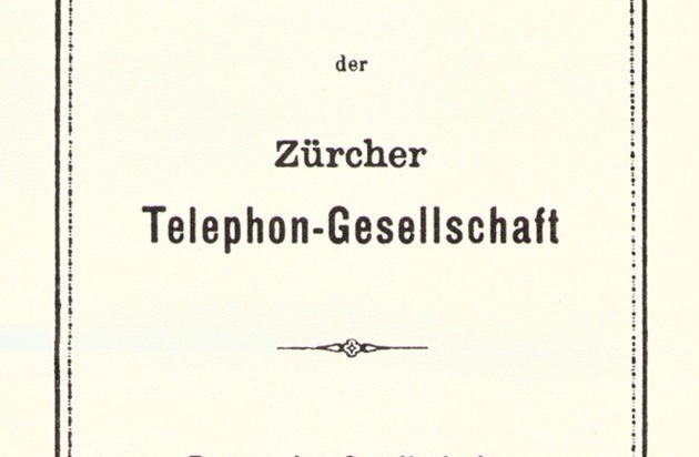 Couverture du premier annuaire téléphonique de Suisse publié par la «Zürcher Telephon-Gesellschaft» en novembre 1880. Texte complémentaire par ots et sur www.presseportal.ch. L'utilisation de cette image est pour des buts redactionnels gratuite. Publication sous indication de source: "obs/Swisscom Directories SA".