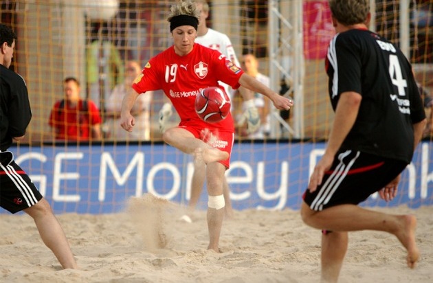 GE Money Bank Beach Soccer Tour, Stephan Leu. Weiterer Text über ots. Die Verwendung dieses Bildes ist für redaktionelle Zwecke honorarfrei. Abdruck unter Quellenangabe: "obs/GE Money Bank". Texte complementaire par ots. L'utilisation de cette image est pour des buts redactionels gratuite. Imprimage sous indication: "obs/GE Money Bank". Sport, Veranstaltung, Freizeit, Unterhaltung, Sponsoring