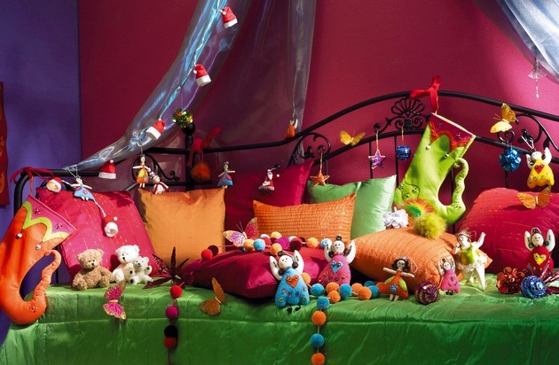 Douce nuit, sainte nuit ... La féerie de cette nuit est intacte, avec l'échange de cadeaux et les héros des histoires de notre enfance qui s'empressent, vifs et resplendissants, autour du sapin de Noël. Mais les enfants ne seront pas les seuls à admirer les figurines finement ciselées tirées des contes de fées, les adultes aussi succomberont à leur charme. N'oublions pas de préparer le décor pour l'arrivée du traîneau magique, avec des coussins aux teintes rouges-orangées ou vert tendre, des guirlandes de pompons, des glands de perles, des boules de plumes ou de paillettes.