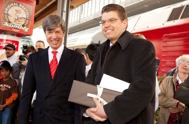 Andreas Rickenbacher, membre du Conseil-exécutif, lors du baptême du train Kambly à Berne : « Des entreprises comme Kambly constituent la colonne vertébrale de notre société et de notre économie. Le train Kambly et la belle coopération de Kambly et des BLS sont des symboles forts de la cohésion du canton de Berne. »