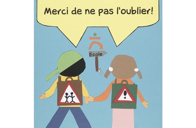 Der ausdrucksvolle Plakatvorschlag mit dem Slogan "Nous sommes des écoliers! - Merci de ne pas l'oublier!" der 3. - 4. Primarklasse aus Salins hat die Jury und die andern sieben Finalklassen überzeugt. / Finalement le projet d'affiche comportant le slogan "Nous sommes des écoliers ! - Merci de ne pas l'oublier" soumis par la 3e et 4e classe de Salins a su convaincre à la fois le jury et les autres classes participantes. Weiterer Text über ots. Die Verwendung dieses Bildes ist für redaktionelle Zwecke honorarfrei. Abdruck unter Quellenangabe: "obs/Renault Suisse SA". Texte complémentaire par ots. L'utilisation de cette image est pour des buts rédactionnels gratuite. Reproduction sous indication: "obs/Renault Suisse SA" Kampagne; Verkehr; Kinder; Praevention / Campagne, prévention, Enfant, circulation, trafic