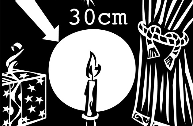 La distance de sécurité entre les bougies et les rideaux, les branches du sapin, les décorations ou l'appareil de télévision doit être de 30 cm au minimum. Texte complémentaire par ots. L'utilisation de cette image est pour des buts redactionnels gratuite. Reproduction sous indication de source: "ops/Cipi"