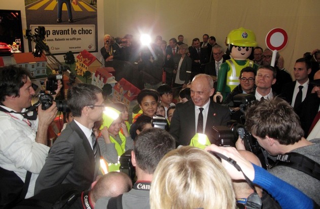 Durant l'inauguration du 83ème Salon de l'automobile de Genève, le Président de la Confédération a rencontré une classe d'école primaire sur le stand du TCS. Il a revêtu un gilet de sécurité similaire à ceux qui seront distribués à tous les enfants débutant l'école primaire à la rentrée 2013.