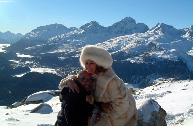 Michel Comte (photographe vedette) et Sophia Loren devant le panorama grandiose des vallées et des lacs de la Haute-Engadine.