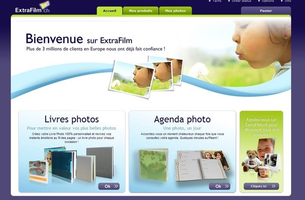 Commandez dès à présent vos albums photos, calendriers personnalisés et autres produits photos sur ExtraFilm.ch et bénéficiez de 25% de réduction à partir de deux articles achetés. Cerise sur le gâteau: jusqu'au 30 novembre 2008, nous vous offrons les frais d'envoi!