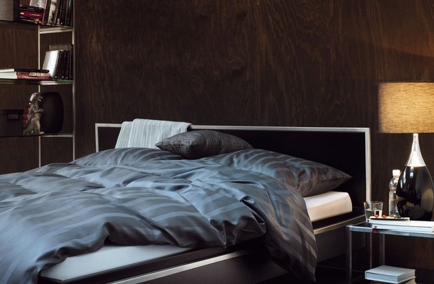 architectonique. Le lit ZODIAC, noir au cadre d'acier fin, donnera à