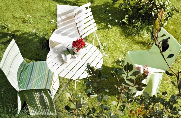 GREEN GREEN GRASS OF HOME: SUGAR table pliante 39.– chaise // Pliante 15.– housse de 15.– à 30.– Texte complémentaire par ots. L'utilisation de cette image est pour des buts redactionnels gratuite. Reproduction sous indication de source: "obs/Interio SA“