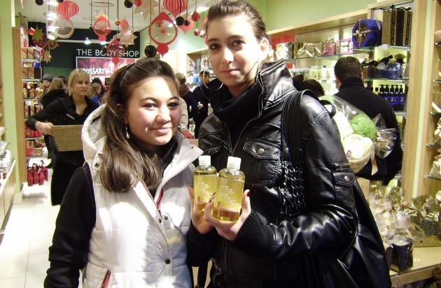 Deux visiteuses chanceuses. Texte complémentaire par ots et sur www.presseportal.ch. L'utilisation de cette image est pour des buts redactionnels gratuite. Reproduction sous indication de source: "obs/Body Shop"
