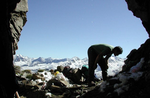 Cristallier devant une fissure dans la région du parc en projet. Texte complémentaire par ots et sur www.presseportal.ch. L'utilisation de cette image est pour des buts redactionnels gratuite. Reproduction sous indication de source: "obs/ASCMF".