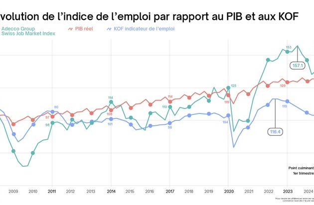 Contact Service presse du Groupe Adecco Suisse Sophia Zuber, tél. +41 79 560 48 32, press.office@adeccogroup.ch Stellenmarkt-Monitor Schweiz, Université de Zurich Johanna Bolli-Kemper, tél. +41 44 635 23 02, bolli-kemper@soziologie.uzh.ch À propos de l’Adecco Group Swiss Job Market Index (Job Index) En collaboration avec le Stellenmarkt-Monitor Schweiz, le moniteur du marché de l’emploi suisse de l’Université de Zurich, le Groupe Adecco Suisse publie sur une base trimestrielle l’Adecco Group Swiss Job Market Index (indice de l’emploi). L’indice de l’emploi constitue pour la Suisse une vaste unité de mesure scientifique sur le développement de l’offre d’emploi dans les portails d’emplois en ligne et les sites Web des entreprises. Il repose sur des enquêtes trimestrielles représentatives portant sur les offres d’emploi publiées dans la presse, sur les portails d’emplois en ligne ainsi que sur les sites Web d’entreprises. À propos du Groupe Adecco Suisse Le Groupe Adecco Suisse est le n° 1 suisse du domaine des ressources humaines. Comptant plus de 700 collaborateurs sur plus de 50 sites dans toutes les régions linguistiques, nous aidons chaque année près de 26 000 spécialistes à trouver un nouveau défi professionnel. Nos marques spécialisées sont expertes dans leur domaine. Le Groupe Adecco Suisse propose des solutions sur mesure non seulement aux demandeurs d’emploi mais encore aux petites, moyennes et grandes entreprises dans le domaine des ressources humaines: recrutement pour des emplois fixes ou temporaires, payroll services, dissociation et externalisation de processus RH complets, planification professionnelle, promotion et mobilité des talents. En Suisse, nous sommes représentés par les marques suivantes: Adecco, Adia, Akkodis, Pontoon Solutions, Lee Hecht Harrison et General Assembly. Le Groupe Adecco Suisse est une société du Groupe Adecco, le leader mondial du conseil et des solutions en matière de talents. Nous sommes convaincus que chacun doit être prêt pour l’avenir, c’est pourquoi nous trouvons du travail à plus de 3,5 millions de personnes chaque jour. Nous formons, développons et recrutons des talents dans 60 pays, permettant aux organisations de contribuer au développement de l’avenir du travail. Le Groupe Adecco a son siège à Zurich, en Suisse (ISIN: CH0012138605) et est coté à la SIX Swiss Exchange (ADEN).
