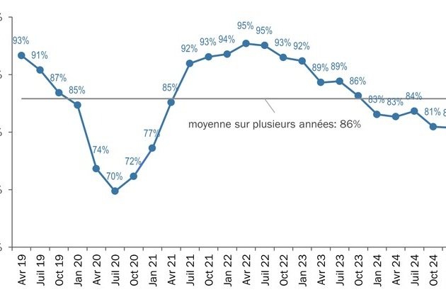 Même si seule une petite partie des PME est directement active sur le marché américain, nombreuses sont celles qui en ressentent les effets en tant que fournisseurs de grandes entreprises exportatrices. Le franc fort et la pénurie persistante de main-d’œuvre qualifiée aggravent encore la situation. Environ 30 % des entreprises se plaignent de manquer de personnel qualifié, un problème structurel qui n’est pas atténué par la faiblesse de la demande.