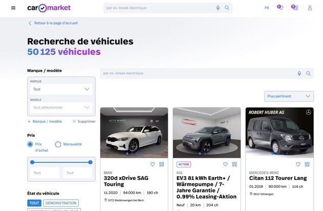 Que ce soit pour une voiture familiale, une citadine ou un SUV, les intéressés trouveront sur carmarket.ch des véhicules contrôlés de marques et de classes de prix variés. La plateforme est synonyme de transparence, de confiance et de convivialité et facilite ainsi l'achat de voiture comme jamais auparavant.