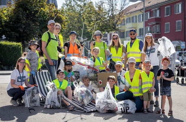 «Petits et grands participent à la Clean-Up-Day et débarrassent les rues, les forêts et les lacs des déchets sauvages.»