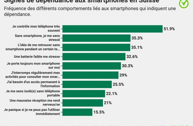 Deuxième enquête représentative Comparis sur la dépendance au smartphone