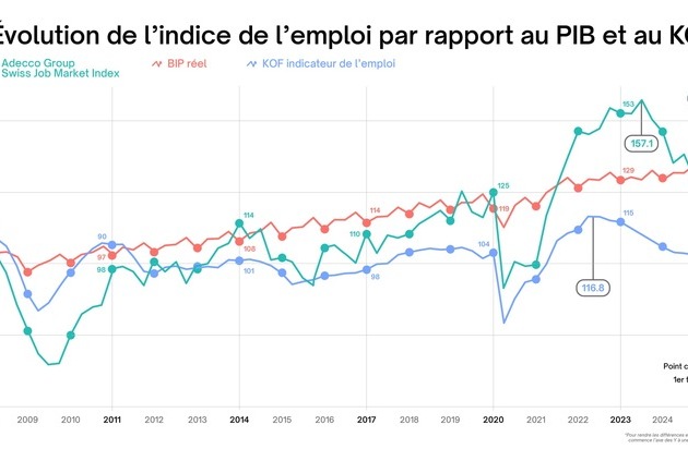 Marcel Keller, Country President du Groupe Adecco Suisse, résume la situation : « L'indice actuel de l'emploi montre que, malgré une légère stabilisation conjoncturelle, la croissance de l'économie suisse restera inférieure à la moyenne jusqu'à fin 2025. La consommation privée continue de soutenir l'économie, favorisée par la hausse des salaires réels et une inflation très faible, tandis que l'industrie, les exportations et les investissements restent faibles dans un contexte international tendu. La situation sur le marché du travail s’en ressent : l'emploi et l'activité économique stagnent et le chômage augmente. Les indicateurs avancés tels que le Job Index affichent certes une certaine stabilisation, mais aucun revirement de tendance pour l'instant. »