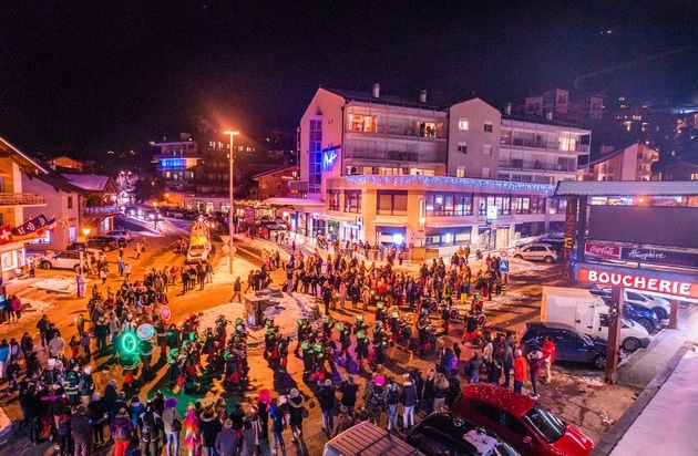 • 18h45 : cortège avec chars et guggens (Les Chenegaudes et Los Diablos) de la place du Square jusqu'à la place de la Télécabine