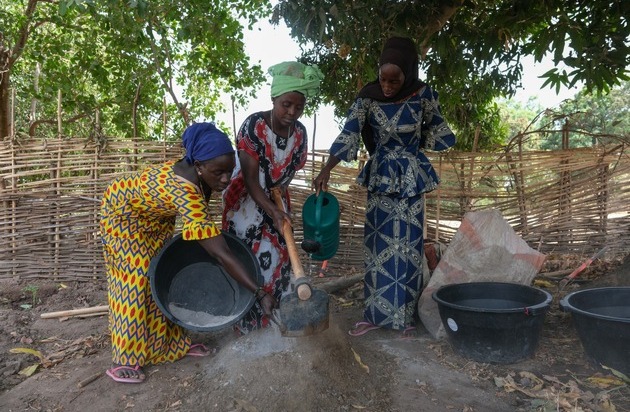 Des femmes rurales, soutenues par SWISSAID, préparent le repas à Bambadinca Cossara en Guinée-Bissau. © Ricci Shryock/SWISSAID